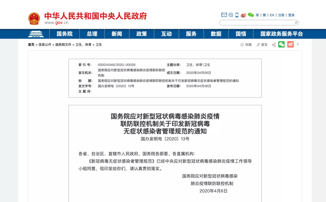 第六条 强化信息公开。国务院卫生健康行政部门每天公布无症状感染者报告、转归和管理情况。各省(区、市)公布本行政区域的情况,本土传播和境外输入情况分别统计报告。